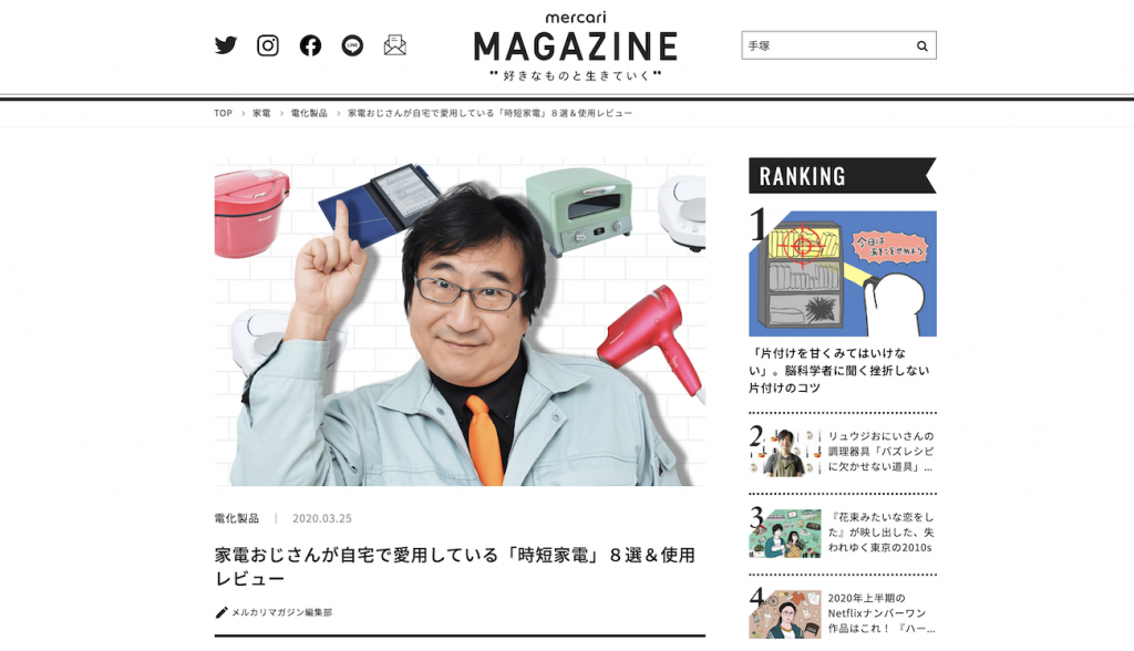 【メルカリマガジン】記事制作協力「家電おじさんが自宅で愛用している「時短家電」8選&使用レビュー」