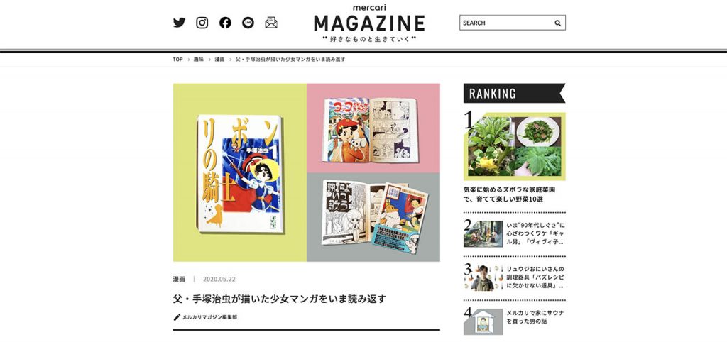 【メルカリマガジン】記事制作協力「父・手塚治虫が描いた少女マンガをいま読み返す」