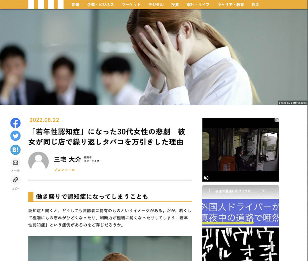 ◎「若年性認知症」になった30代女性の悲劇 彼女が同じ店で繰り返しタバコを万引きした理由 | マネー現代 | 講談社